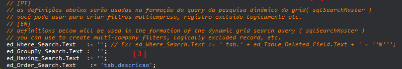 When you need to filter the data from the current screen (for example, only the current company's records - see frmCadCLIENTES ) you add the information: