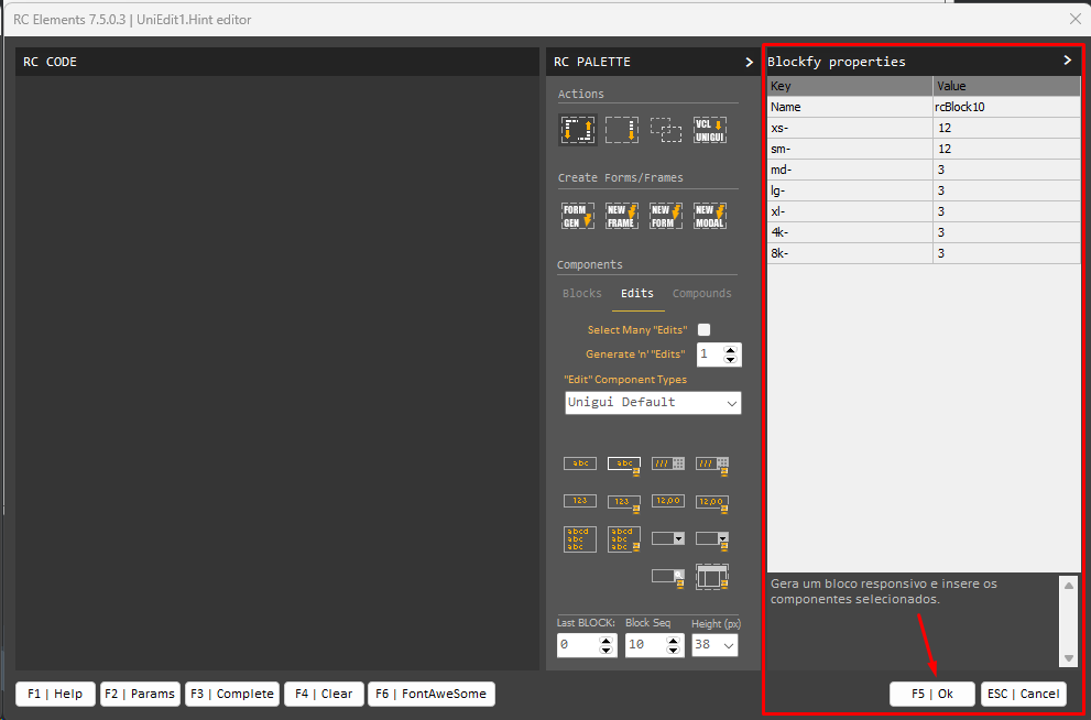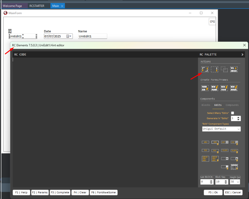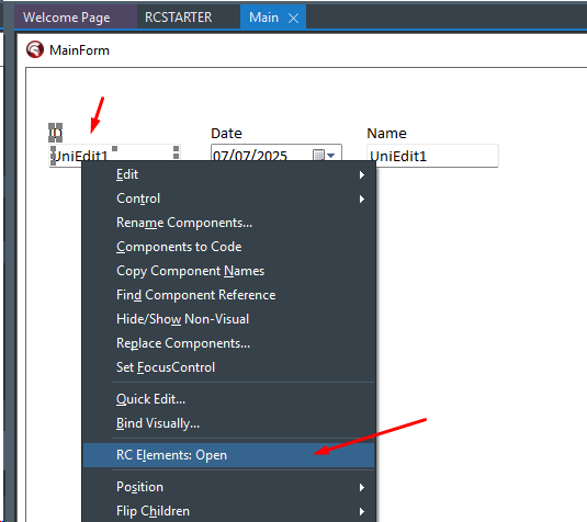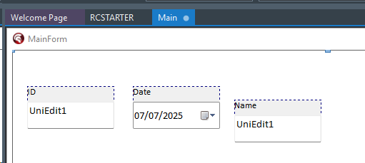Following our small application previously, let's select each "pair" of components: a Label and an "Edit" component.