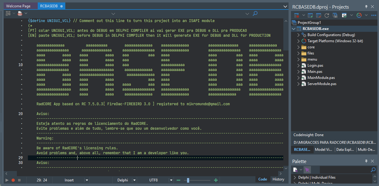 In the following sections, you will see the features that RadCORE offers for creating forms, frames, modals, and inserting components generated from a database table.