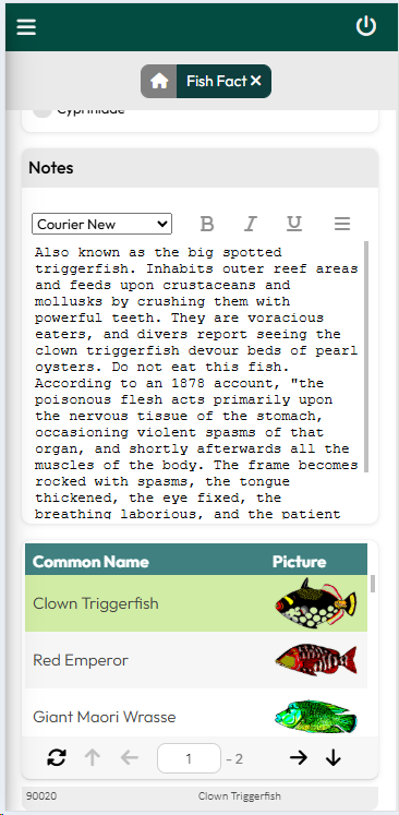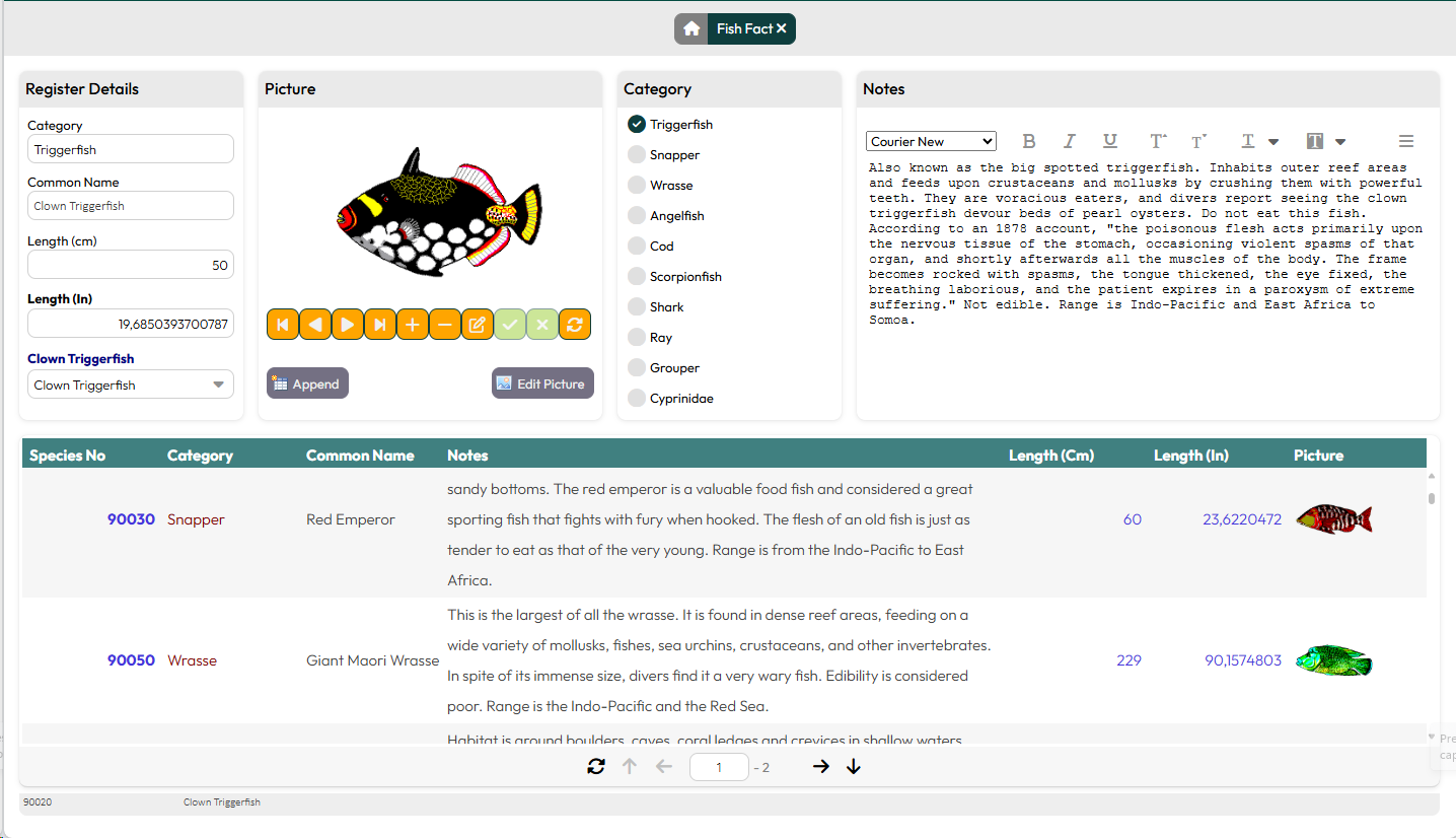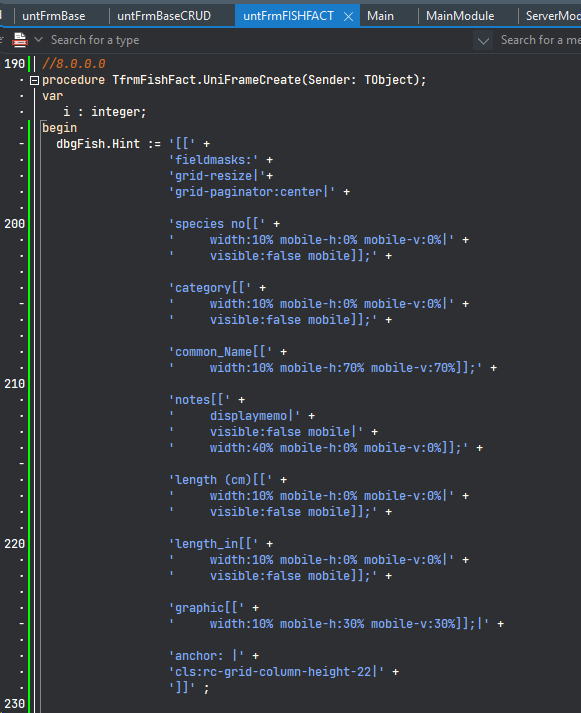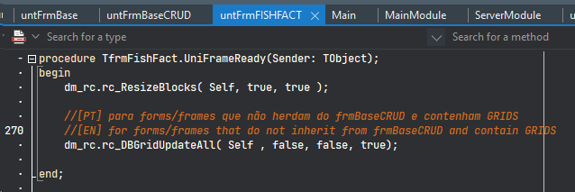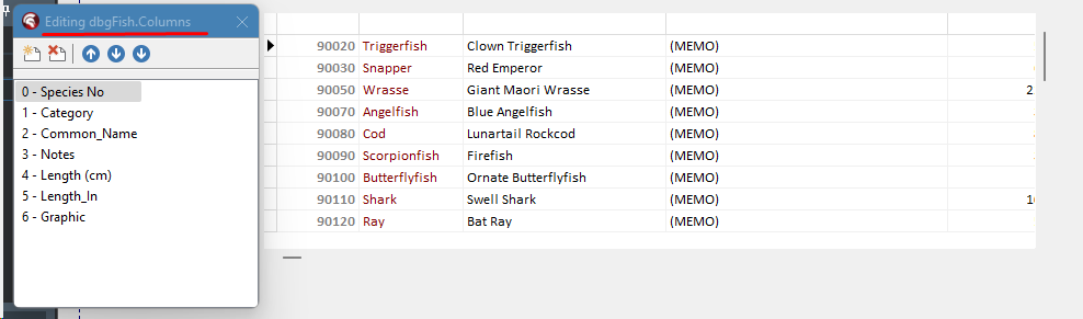 Let's look at the example of MEGADEMO, frmFISHFACT: