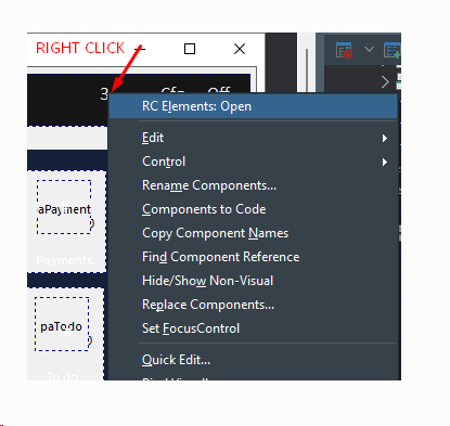 Select a component and open the context menu: