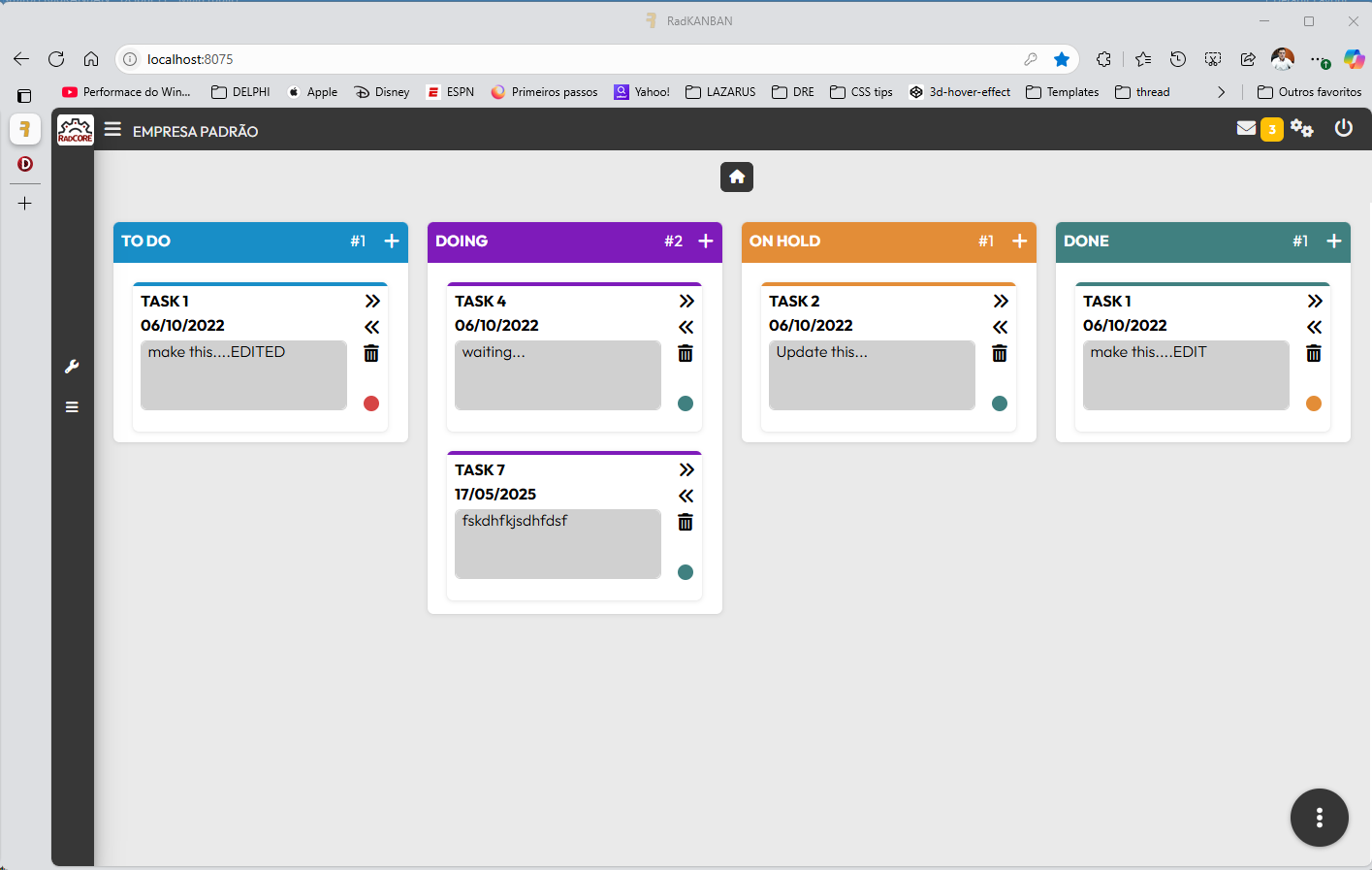 Following the same steps explained to create an application with RC WIZARD, after creating a RadKanban application and running it you will have this result: