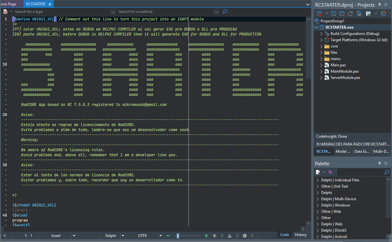 The STARTER version is the closest to a standard UNIGUI application, as it will not have ready-made examples such as menus, login, etc.