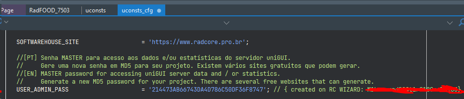 Para segurança do projeto, acesse http://onlinemd5.com/ ou qualquer site gerador de MD5 que preferir, crie sua própria senha e cole o MD5 na constante USER_ADMIN_PASS.